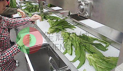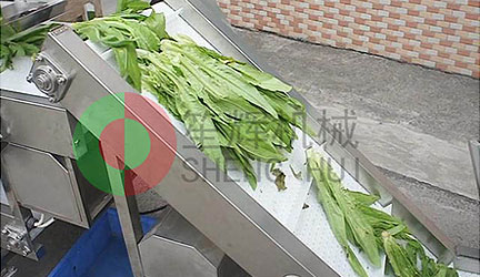 原材料輸送機把待處理物料(葉菜,土豆,蘿卜等)提升輸送到自動流水式工作臺