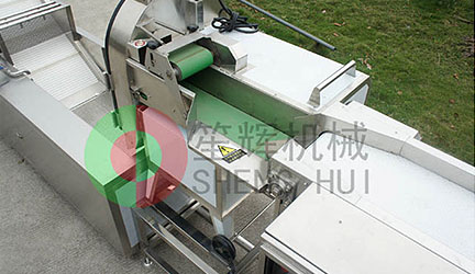 變頻調速切菜機與上層輸送帶無縫對接,按烹飪規格對物料進行切割。