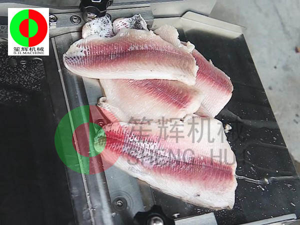 去魚皮機能夠輕松把魚皮與魚肉分離,去皮效果相當好。與魚肉分離開的魚皮完整,可以進入下一步加工工作,而魚肉完整,也可以直接進入到下一個加工環節,非常實用!