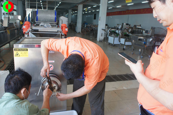 近日,某知名企業工作人員親臨我司嘗試進行凍肉絞肉機處理牛筋,物料工藝加工效果令其非常滿意,現場簽訂購買合同!凍肉絞肉機它可將未解凍的肉塊直接進行絞切(可絞-18℃以下狀凍肉),絞成規格不同的肉碎,不損害肉質纖維組織,由于無須解凍,所以保持了營養及肉鮮味。肉料溫升小,利于產品保鮮,保留肉的營養成分和減少蛋白的損失。本系列的凍肉絞肉機適合大型餐飲行業,肉類加工廠,食品冷庫廠等單位使用。