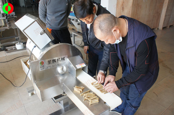 客戶來(lái)司現(xiàn)場(chǎng)測(cè)試酸筍切條加工設(shè)備!