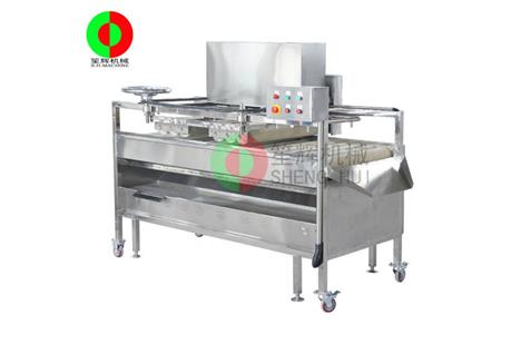 - 產品優勢: 水果毛刷清洗機適用于馬蹄、油桃等水果的深清洗,具有以下特點: 1、可根據各種不同物料的大小和清洗要求,調節上下層毛刷的間距,設置同時調速和分別調速。 2、可將臭氧發生器產生的臭氧注入水箱中,進行臭氧殺*菌。(附加功能) 3、毛刷上方裝有四排高壓水流噴射裝置,分離蔬果表面粘連的泥沙雜質。