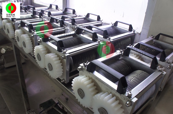 設備操作簡單,洗拆方便,省時省力;如果要加工不同厚薄的肉片,只需換上相應的刀具就可以實現,一機多用。刀具間距可定做。機內裝有保護開關,當刀具外露時,機器自鎖不能起動,以保安*全。刀片用鋼材制造,經久耐用!