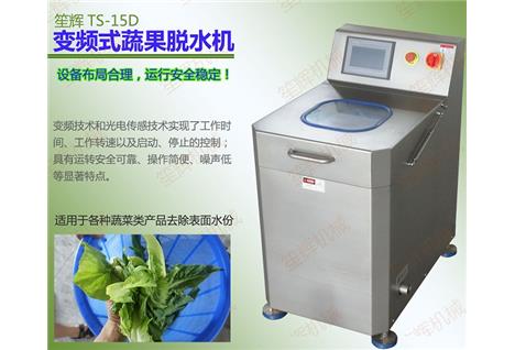 - 產品優勢: TS-15D型全自動變頻式蔬菜脫水機適用于各種蔬菜類產品去除表面水份,是蔬菜加工行業快速脫去蔬菜表面水分較為理想的加工設備。