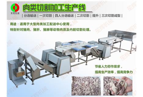 肉類切割生產線/豬肝切割生產線,用于豬肉等肉類,豬肝等內臟的切割加工,輔助人工操作,減輕人力勞動強度、提高產能。適用于大型肉食類加工配送中心等使用。特別針對豬肉、豬肝等動物肉質、內臟的切割處理。