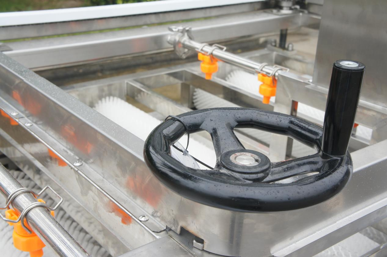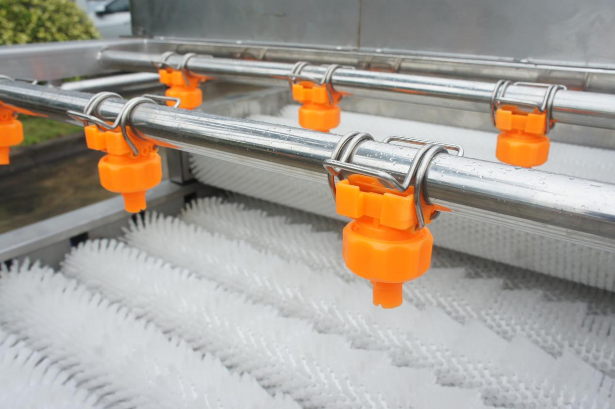 - 產品優勢: 甘蔗清洗機適用對各類型甘蔗的清洗,產量大,操作方便!具有以下特點: 1、可根據各種不同甘蔗的大小種類,調節上下層毛刷的間距,設置同時調速和分別調速。 2、可將臭氧發生器產生的臭氧注入水箱中,進行臭氧殺*菌。(附加功能) 3、毛刷上方裝有四排高壓水流噴射裝置,有*效清洗甘蔗表面粘連的泥沙雜質。